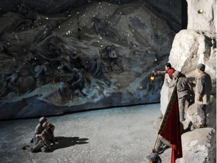 步入“砥砺征途”展区,实景化布置瞬间将人包裹。身旁冷风轻拂,带着凛冬寒意,精准还原雪山草地的严酷环境;三维声场中,风雪呼啸、战士喘息、互助低语交织回响,立体呈现红军与自然抗争的艰辛。在场者仰首凝望前方“茫茫雪山”,仿佛以双脚丈量那段艰苦卓绝的征程,切身感受红军战士在信仰支撑下的顽强意志,耳畔仿佛萦绕长征路上可歌可泣的互助故事。